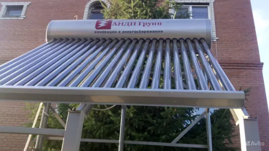 Накопительный бак солнечного вакуумного коллектора хранит нагретую воду и не дает ей быстро остыть.